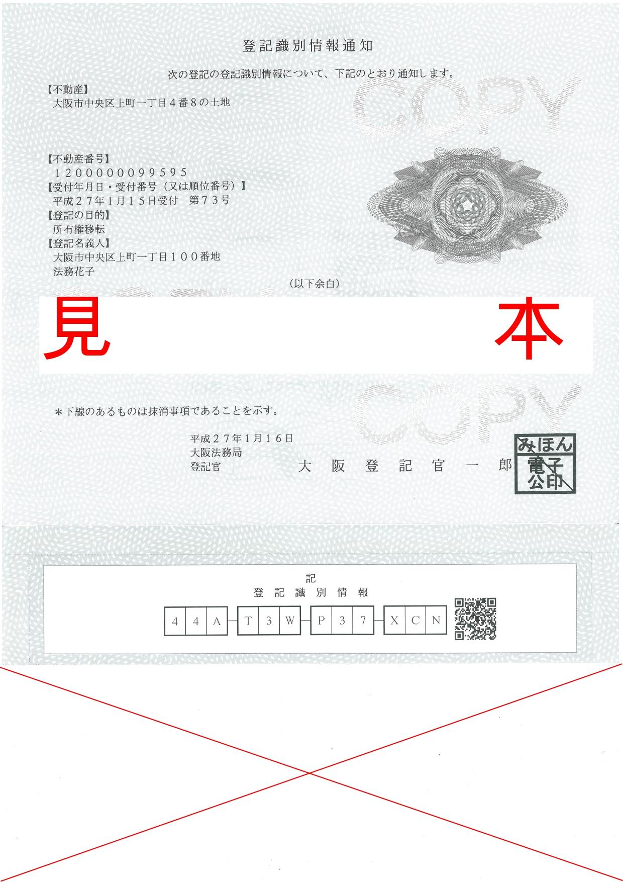 登記済証は、次に権利を移転したり抵当権を設定したりするときの登記申請の際に必要となるので非常に重要な書類ですが、登記済証そのものに不動産の権利が表われているわけではなく、その不動産に関して登記された権利者であることを証明する書類の1つにすぎません。 例えば、不動産の所有者が持っている登記済証は、その不動産の所有者であることを証明するための一つの書類にすぎないということです。 もし、不動産の所有者がその登記済証を失くしてしまったり、あるいは誰かに盗まれたとしても、登記済証は所有権そのものではありませんので、不動産の所有権を失うことにはなりません。 2.現在の権利証について 従来は、登記を申請するときには、法務局に出頭して書面で申請することになっていたのですが、平成16年の法改正により、法務大臣の指定を受けた法務局(オンライン庁)では、インターネットで申請できることとなりました。 ところが、登記済証は、書面のままではオンラインにより法務局に提出することも、反対に法務局から通知されることもできないため、オンライン申請の制度と両立できません。そこで、オンライン申請でも利用可能な「登記識別情報」の制度が導入されました。登記識別情報は、アラビア数字その他の符号の組み合わせからなる12桁のパスワードで、不動産及び登記名義人ごとに定められます。 登記識別情報通知(見本)※左側が折込方式、右側がシール方式